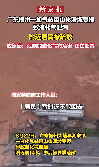 【新闻速递】梅州一加气站因山体滑坡致液化气泄漏, 2人被困!
