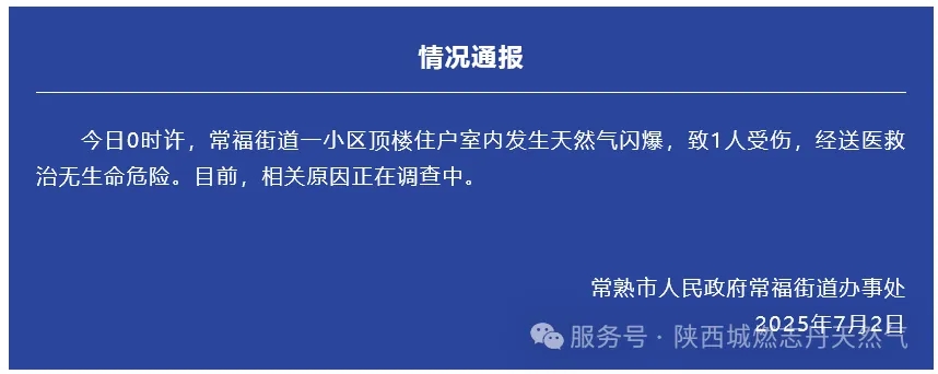 【新闻速递】江苏常熟一小区凌晨发生天然气闪爆,致1人受伤...